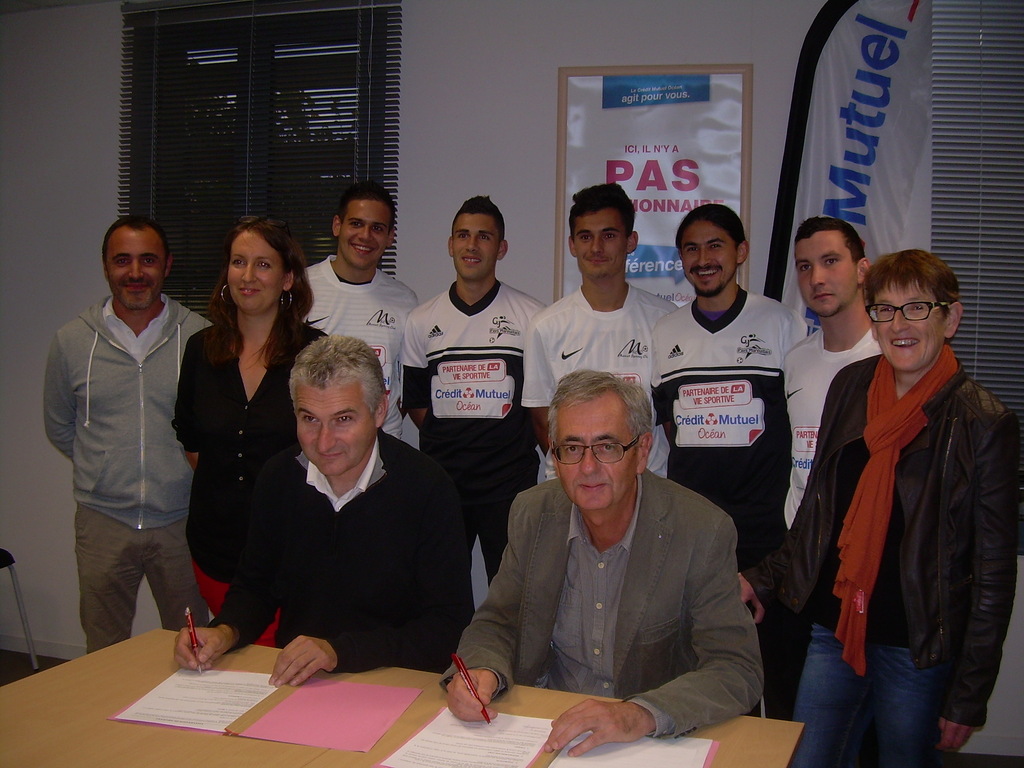 Le Crédit Mutuel Océan est un partenaire privilégié et historiuqe du MSC. Vendredi dernier, les représentants du club : Florent BARBOTEAU et Romain Sicard, le président du conseil d'administration de la caisse locale du CMO : Patrice GENDRONNEAU, se sont engagés sur un nouveau partenariat de 3 ans.