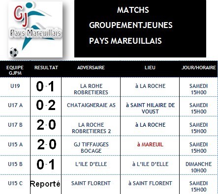 Résultat des matchs du Groupement