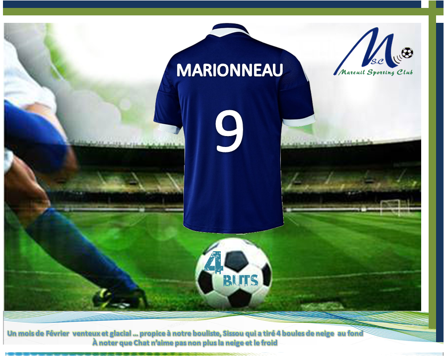 Un mois de Février venteux et glacial … propice à notre bouliste, Sissou qui a tiré 4 boules de neige au fond. À noter que Chat n’aime pas non plus la neige et le froid