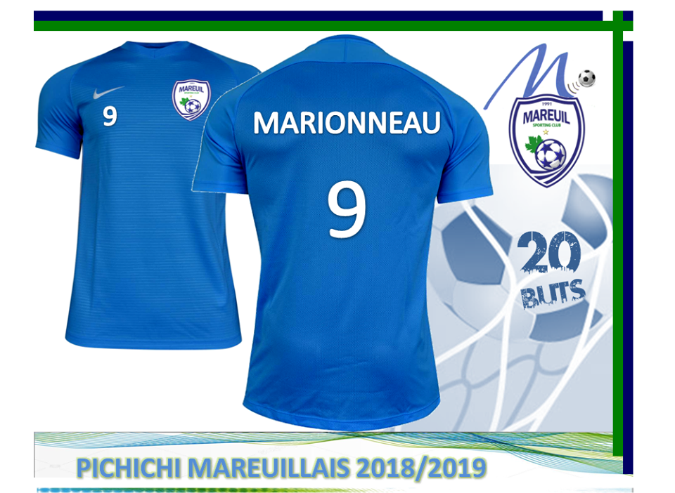 Le « Pichichi Mareuillais 2018-2019 » se prénomme Simon Marionneau avec 20 réalisations au compteur ! Le même total que l’exercice précédent, mais qui lui vaut, cette année, la première place.